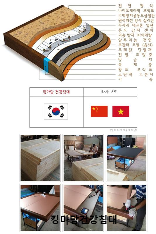 저희 킹마담 돌침대의 보료는 국내 보료에 국내제작을 하고 있습니다. 주문이 들어온 후 꼼꼼한 공정을 거쳐 제작하고 있습니다. 전기장판 같은 열선형식이 아닌 열판 형식으로 돌을 데우는 것이구요, 기본 전자파를 차단하는 무자계 열선을 ! 또 더 안심하시라고 이중차단 EMI시스템을 사용합니다.
