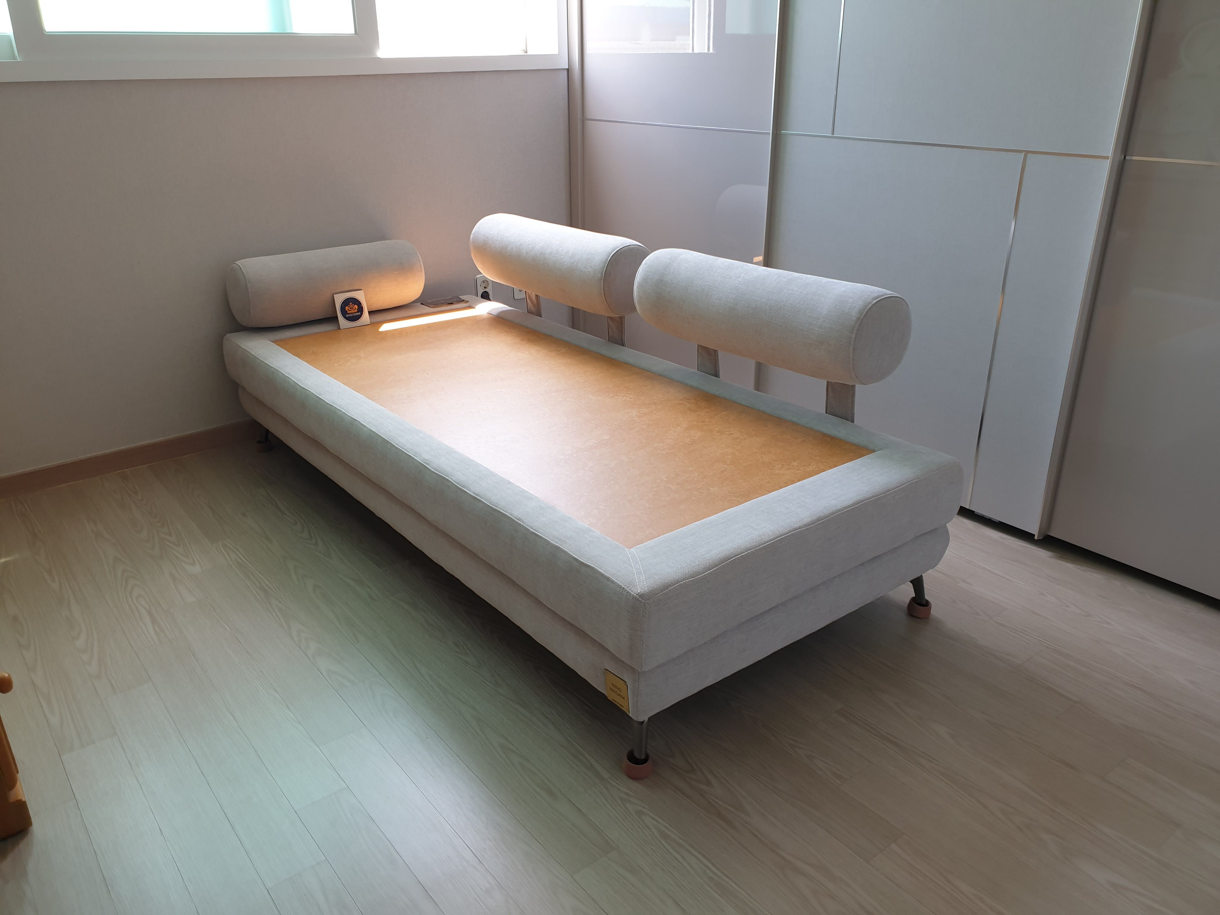 데이베드 형태의 디자인으로 폭 900 의 자유로움으로 싱글 흙침대 겸 황토 흙쇼파로 얼마든지 가능한 디자인입니다.