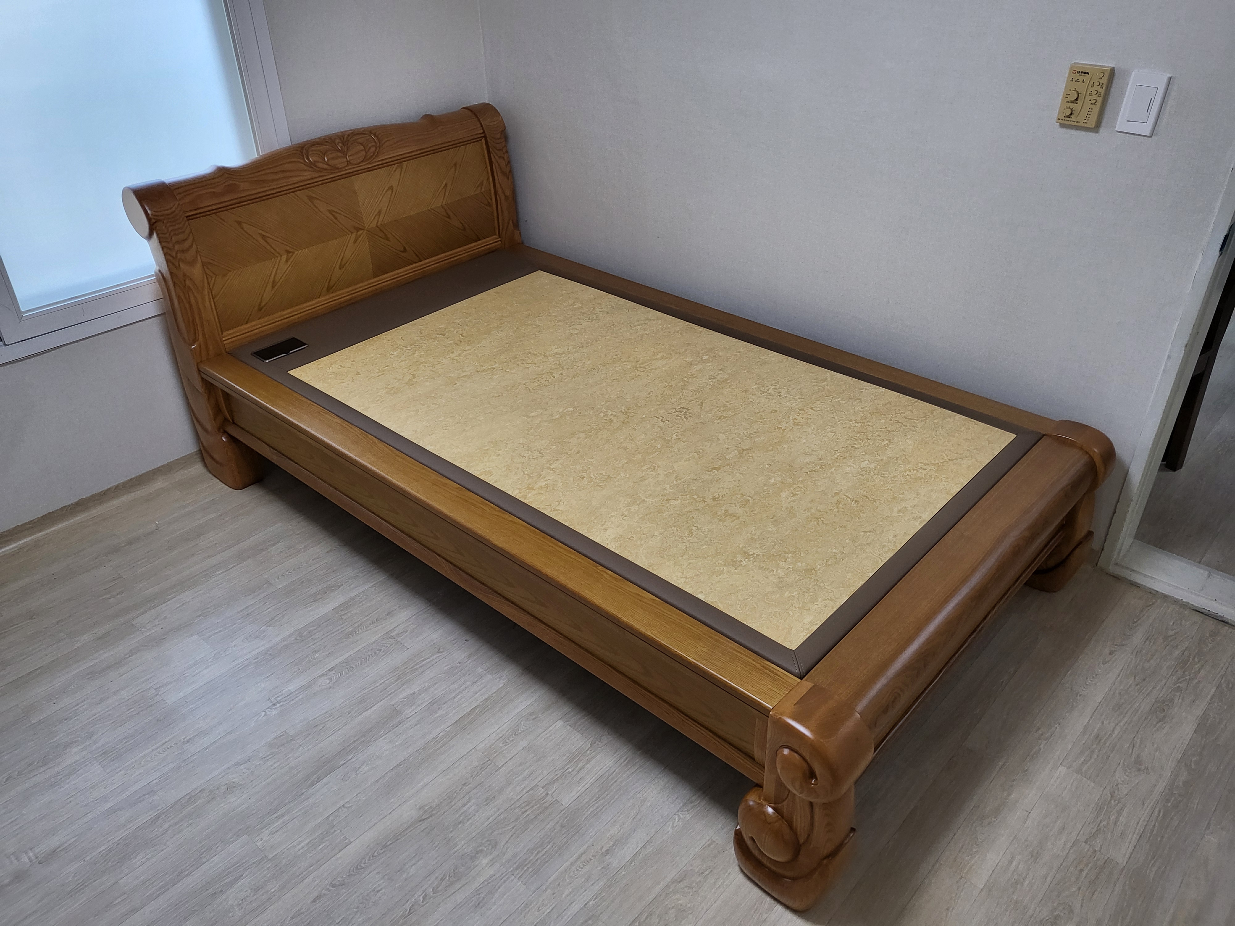 용인에 설치해 드린 침대 인데요~ 보료 가죽 또한 오래 사용할 수 있게 소가죽으로 변경하셨습니다.