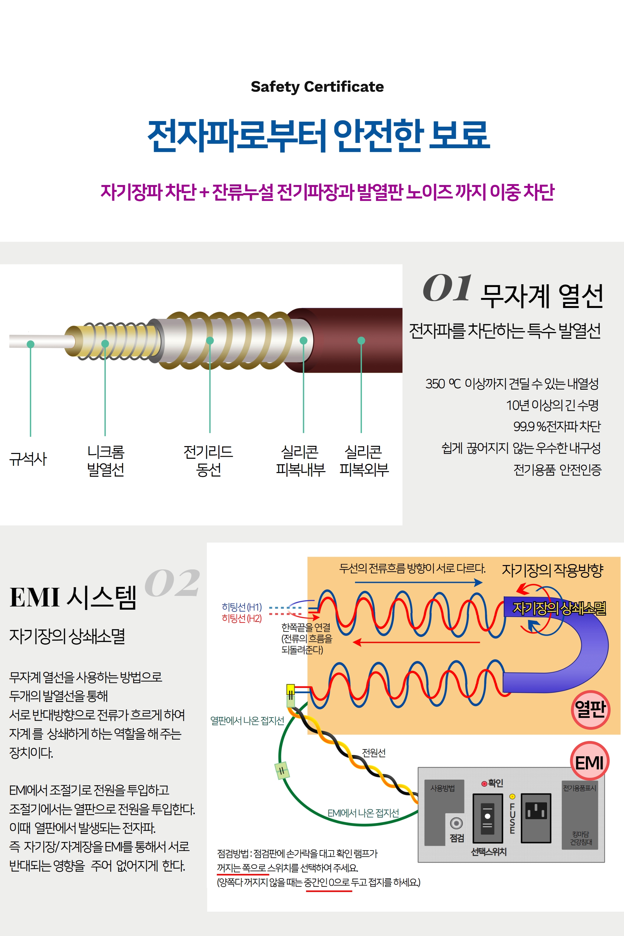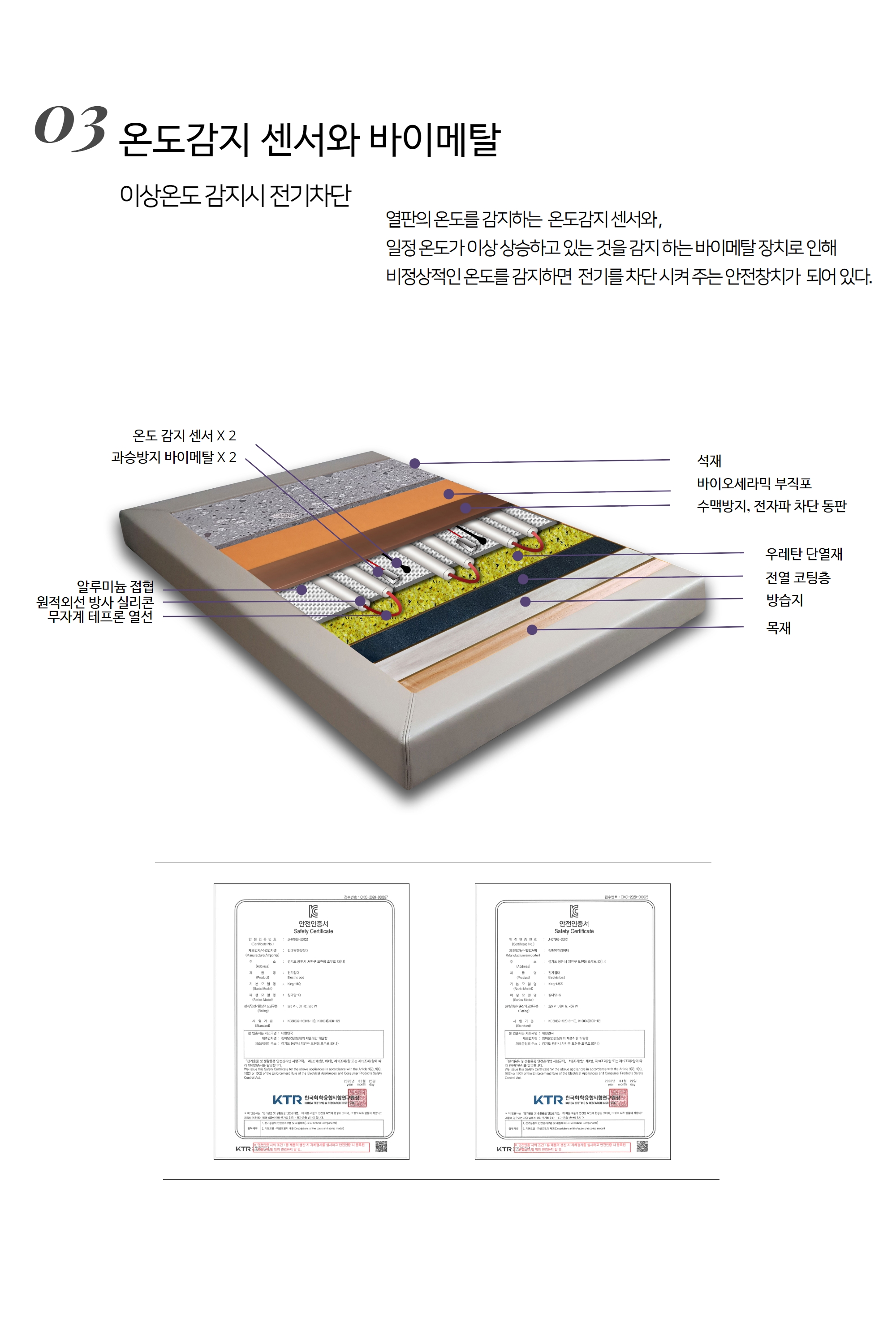 나노신소재로 전자파 어싱도 차단되며, 추가옵션으로 포켓스프링과 근적외선 LED기능을