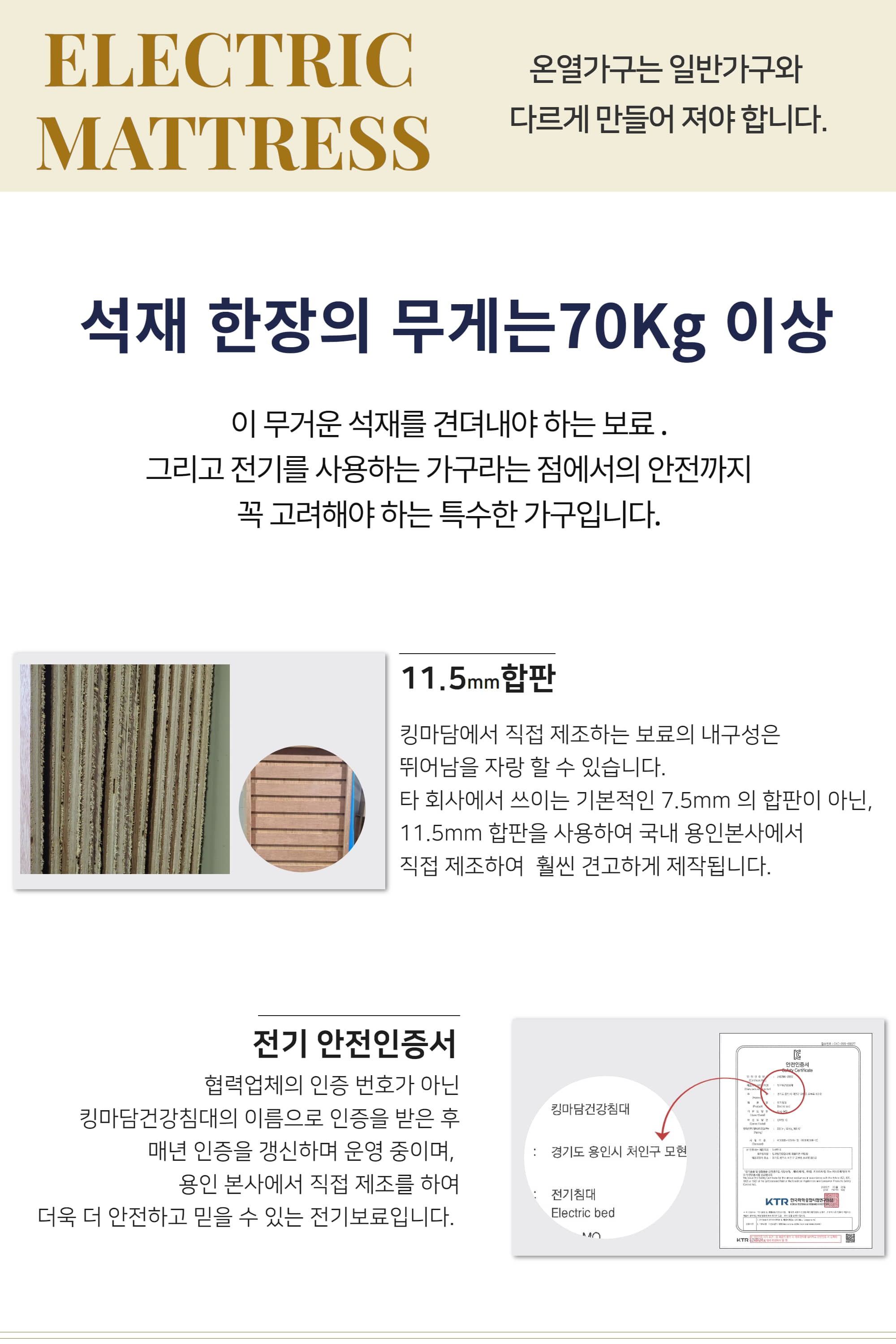 무거운 석재가 올라가는 온돌가구인 만큼 원목 프레임이 튼튼해야 사람의 무게를 견디고